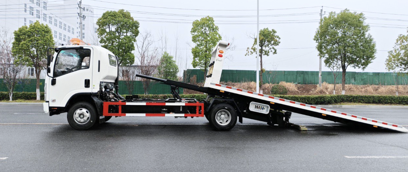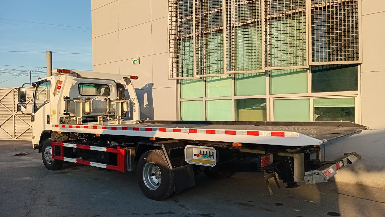 Camion: Isuzu, Año: 2025, Modelo de Camion: KV100 4x2, Motor: 4KH1CN6LB de Diesel, 4 cilindros, Transmisión: Manual, 5 vel + 1 rev, Frenos: Aire, Capacidad del Equipo: 4 Toneladas, Largo de Plataforma: 19 Pies, Capacidad del Underlift: 2.5 Toneladas.
