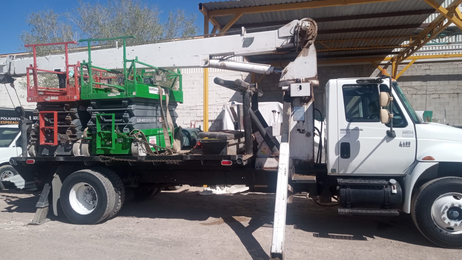 Marca de Camion: International, Año de Camion: 2005, Motor: Navistar DT 466, Transmisión: Estándar de 6 velocidades, Combustible: Diesel, Frenos: Neumáticos de Aire, Rodado: 11.22, Marca del Equipo: National, Año del Equipo: 2012, Capacidad del Equipo: 10 toneladas, Alcance de Pluma: 68 pies + Aguilón de 20 pies, Alcance Maximo de Pluma: 88 pies, Extensiones: 2, Capacidad de Plataforma: 10 toneladas, Equipo y Camion Importados, Papeles en Regla, Cuenta con Pedimento.