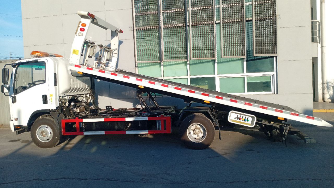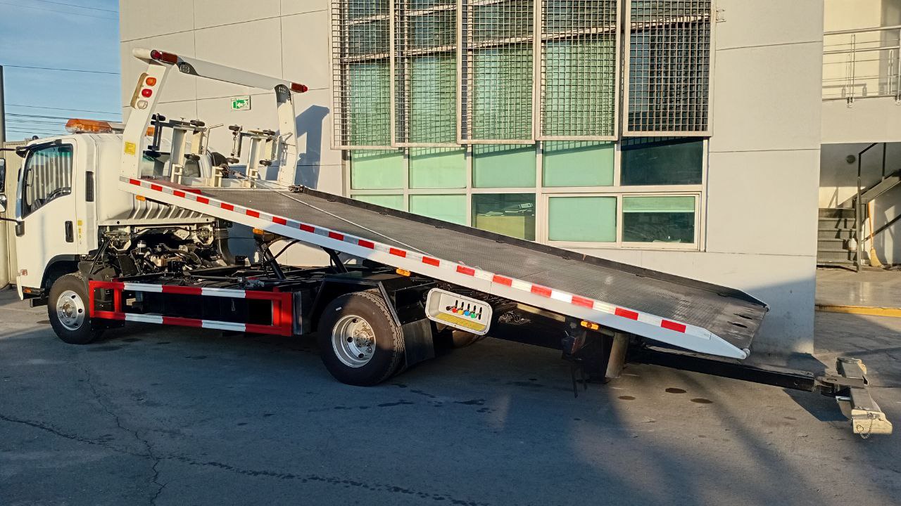 Camion: Isuzu, Año: 2025, Modelo de Camion: KV100 4x2, Motor: 4KH1CN6LB de Diesel, 4 cilindros, Transmisión: Manual, 5 vel + 1 rev, Frenos: Aire, Capacidad del Equipo: 4 Toneladas, Largo de Plataforma: 19 Pies, Capacidad del Underlift: 2.5 Toneladas.